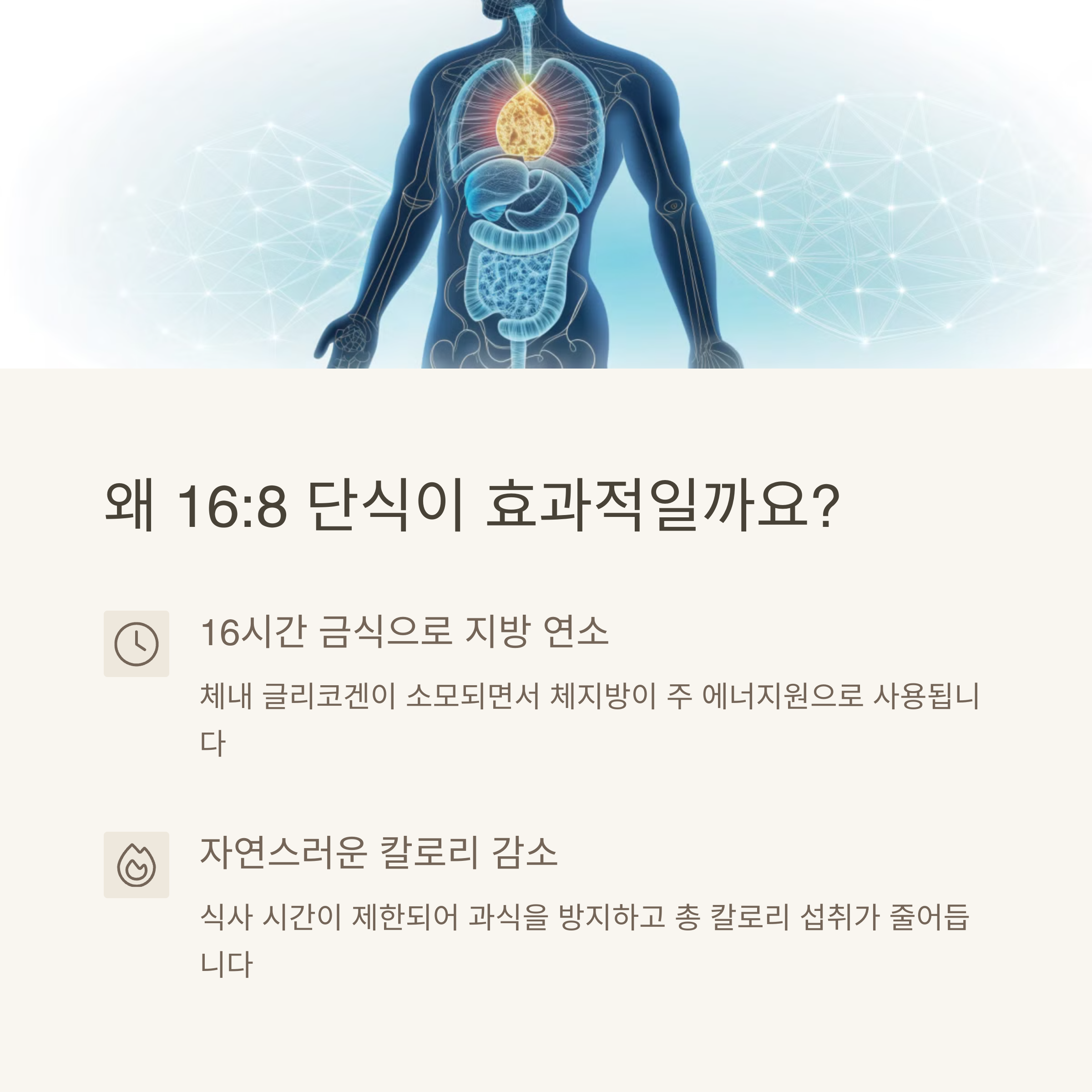 16:8 단식법이 효과적인 이유? 식사 시간을 제한해 불필요한 칼로리 섭취를 줄이고 대사 촉진