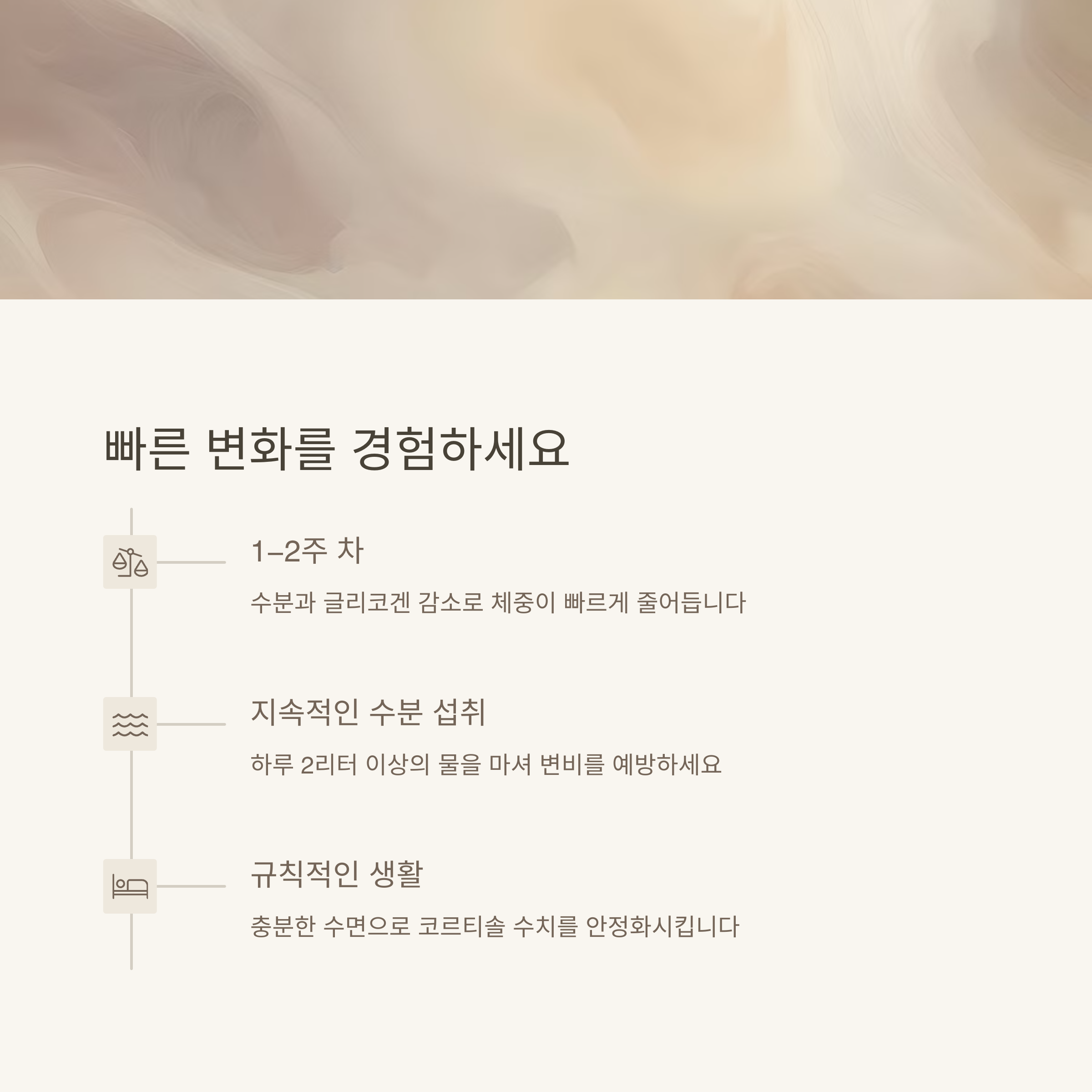 16:8 간헐적 단식은 체중 감량뿐만 아니라 대사 개선, 인슐린 감수성 증가 등 다양한 건강상의 이점을 제공합니다. 16시간 동안 금식하면 체내 글리코겐이 먼저 소모된 후, 체지방을 에너지원으로 활용하는 단계로 넘어가게 됩니다. 따라서 체지방이 감소하고, 칼로리 소비 효율이 높아져 자연스럽게 체중이 감량됩니다. 또한 8시간 내 식사를 마치는 습관은 불필요한 간식 섭취를 줄이고, 신체의 자연스러운 생체 리듬을 조절하는 데도 도움이 됩니다.