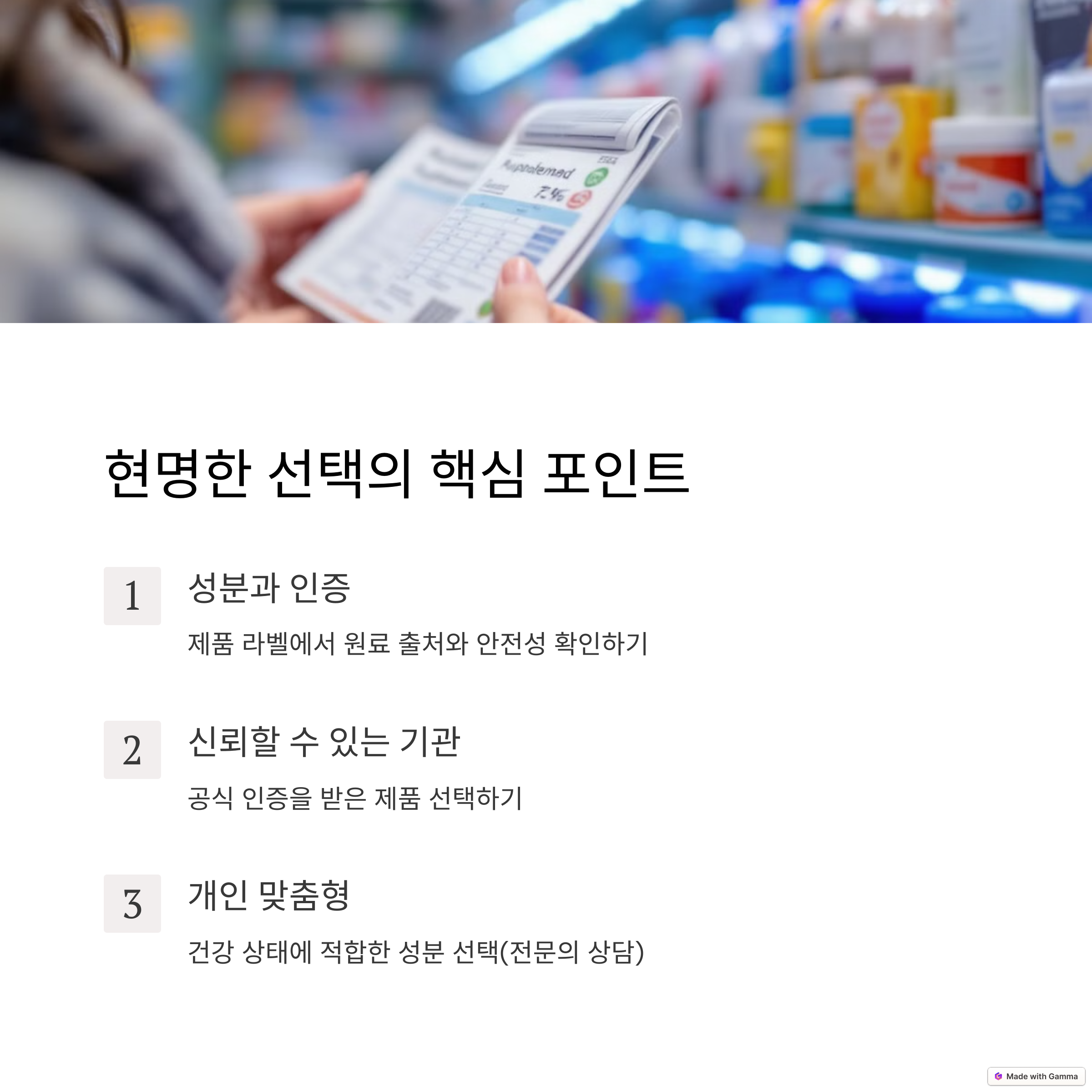 | 올바른 선택법 | 성분과 신뢰도를 확인 후 구매 |