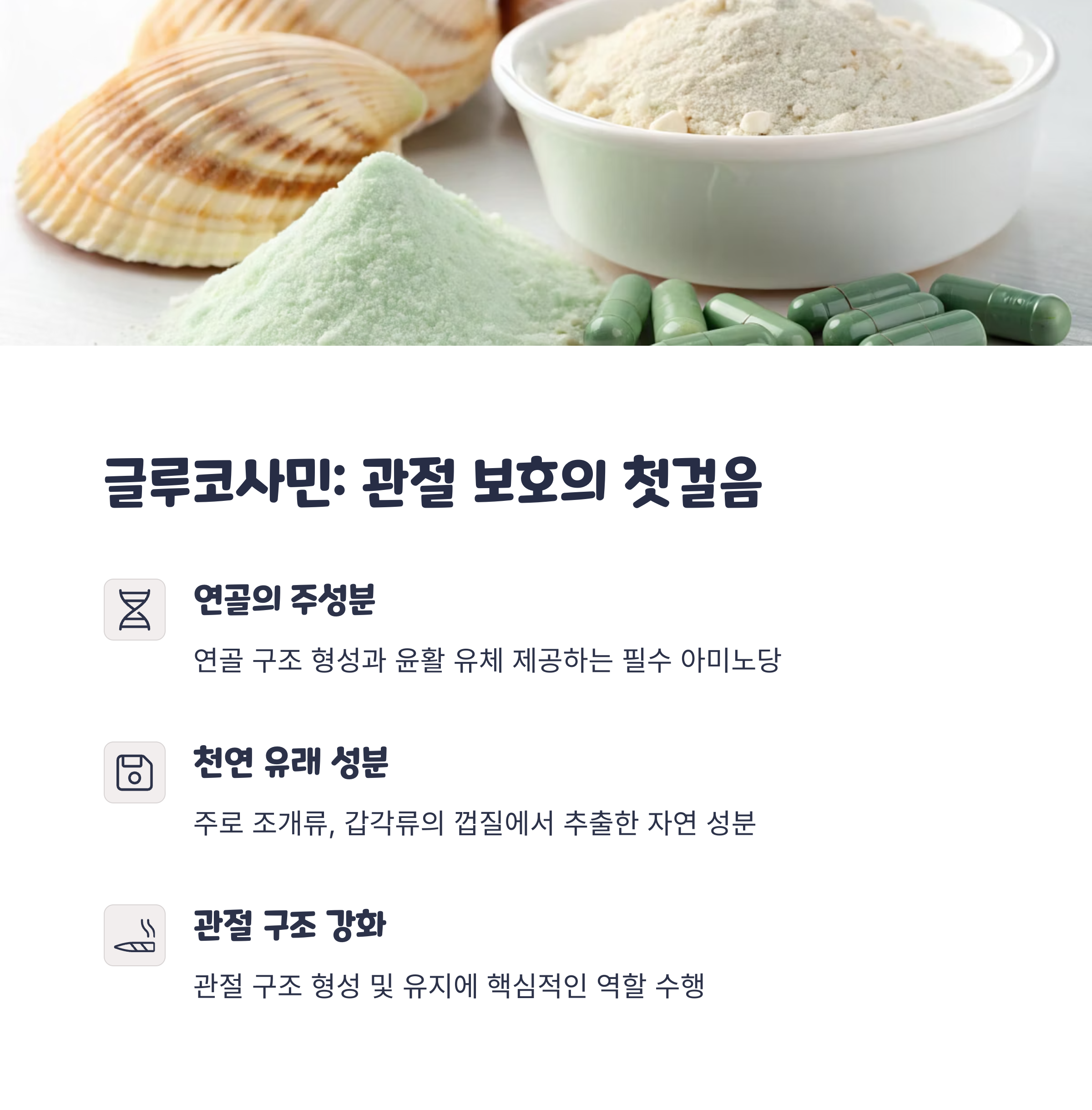 "관절 건강의 기본을 지키는 핵심 성분입니다."