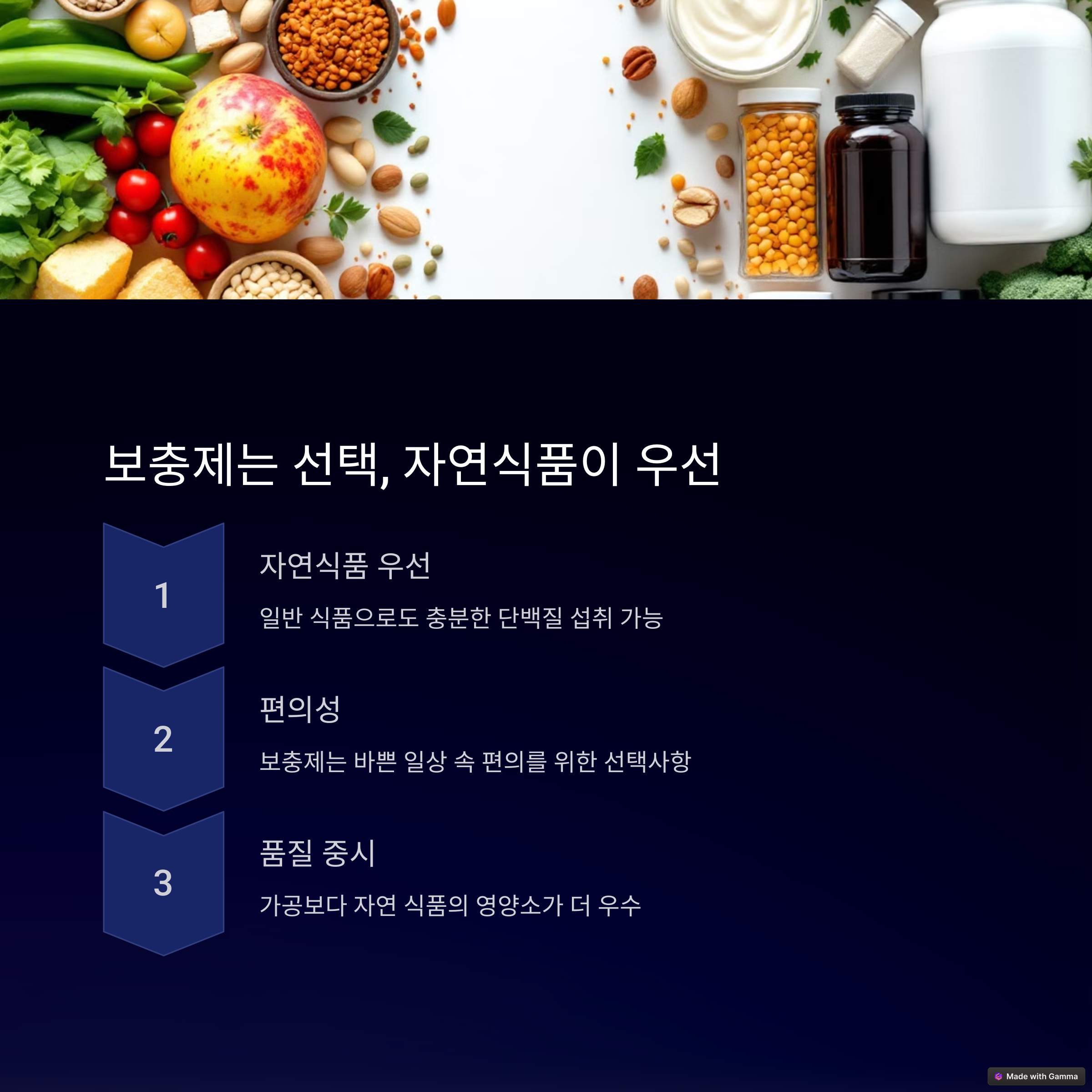 아닙니다! 닭가슴살, 달걀, 콩, 생선 같은 자연 식품에서 충분한 단백질을 섭취할 수 있습니다. 보충제는 편리한 선택일 뿐 필수는 아닙니다.