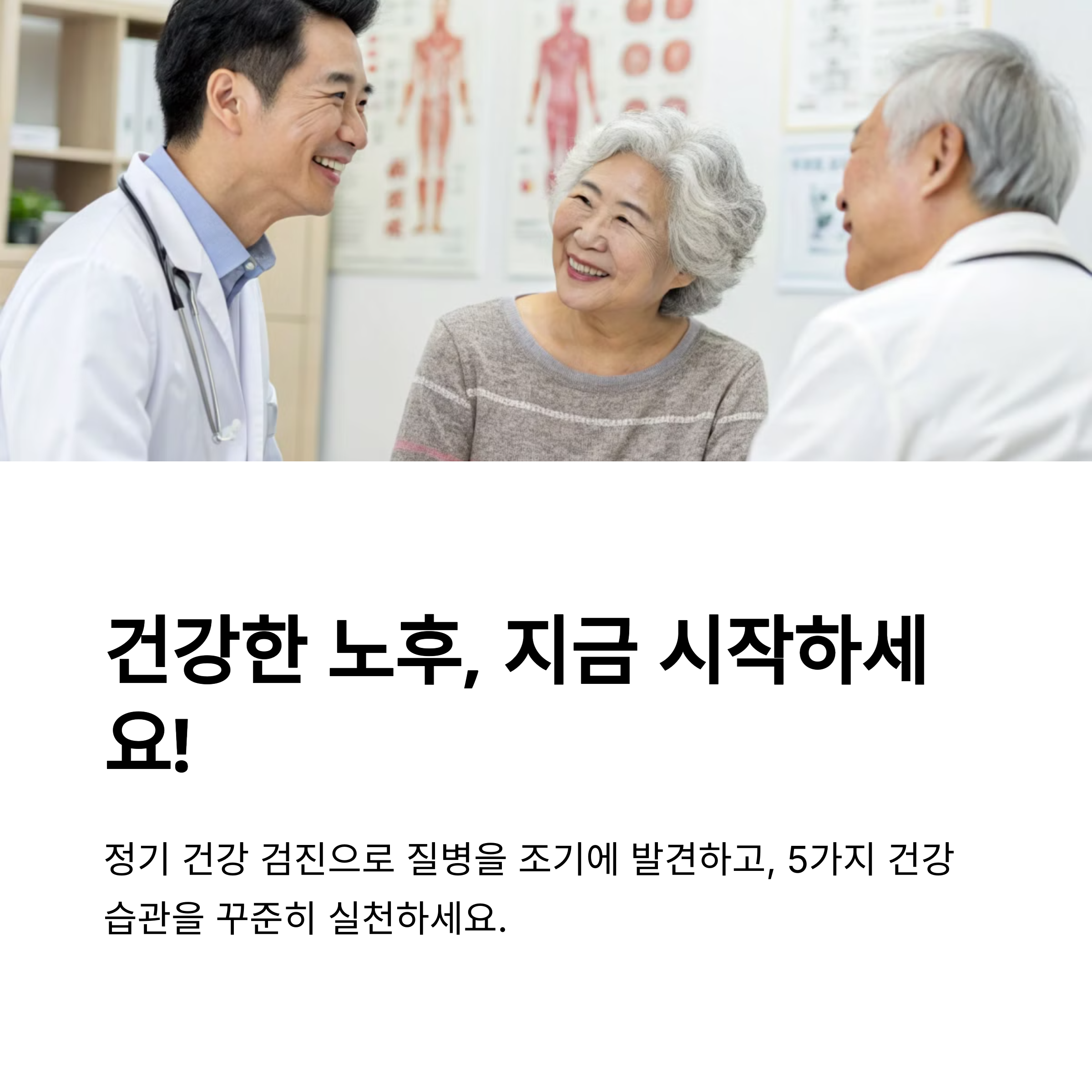 건강한 노년을 위해서는 운동, 식단, 수면, 사회적 교류, 건강 검진이 필수적입니다. 꾸준한 운동과 올바른 식단을 유지하면 신체적 건강뿐만 아니라 정신적 건강도 지킬 수 있습니다. 작은 습관이 모이면 더 건강하고 활력 있는 삶을 살 수 있습니다. 오늘부터 실천해 보세요!
