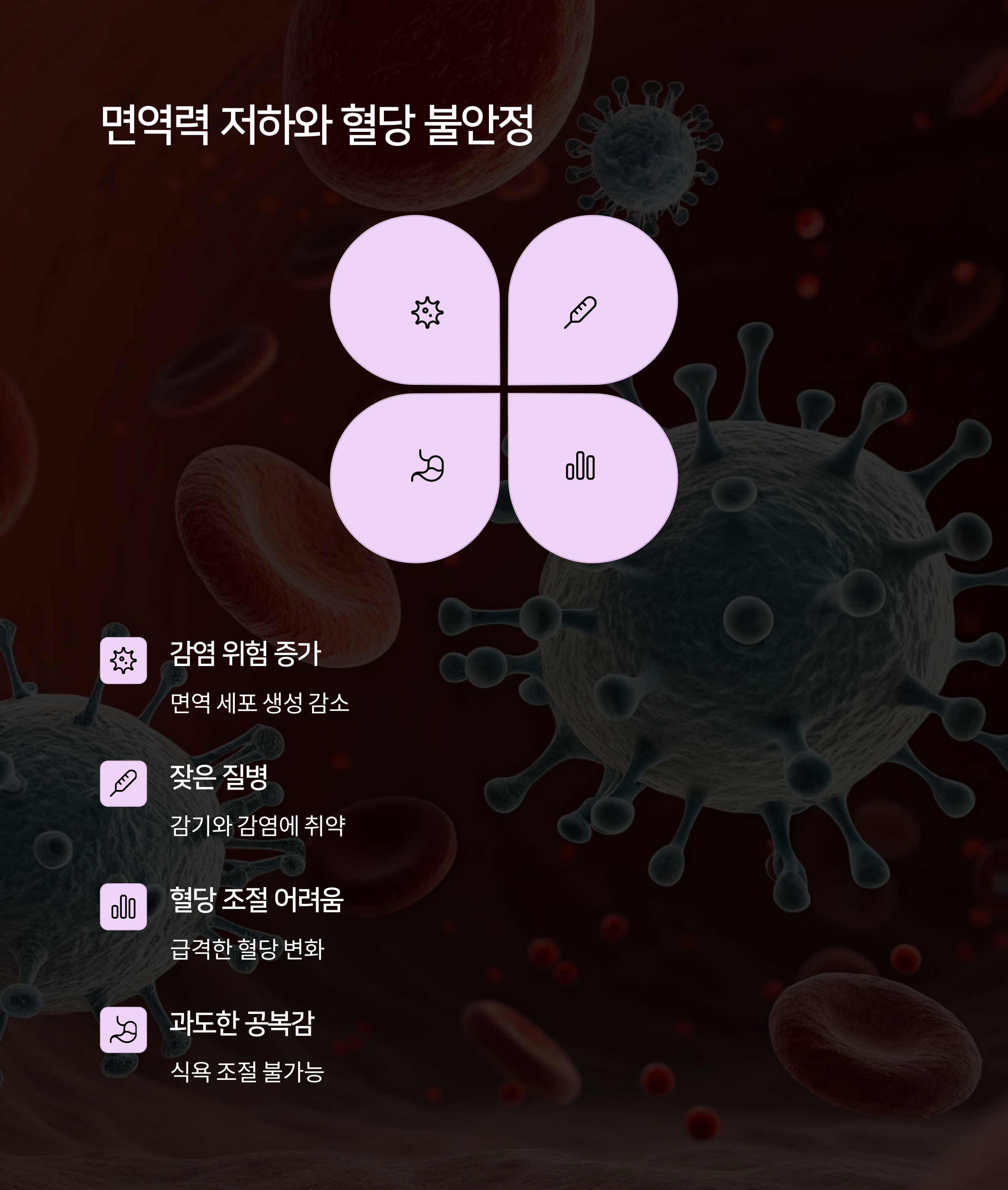 단백질 부족은 근육 손실과 피로를 유발할 수 있으며, 혈당 불안정을 초래해 단 음식에 대한 갈망이 심해질 수 있습니다. 이를 예방하려면 하루에 체중 1kg당 **0.8g 이상의 단백질**을 섭취하고, 규칙적인 운동과 균형 잡힌 식단을 유지하는 것이 중요합니다.