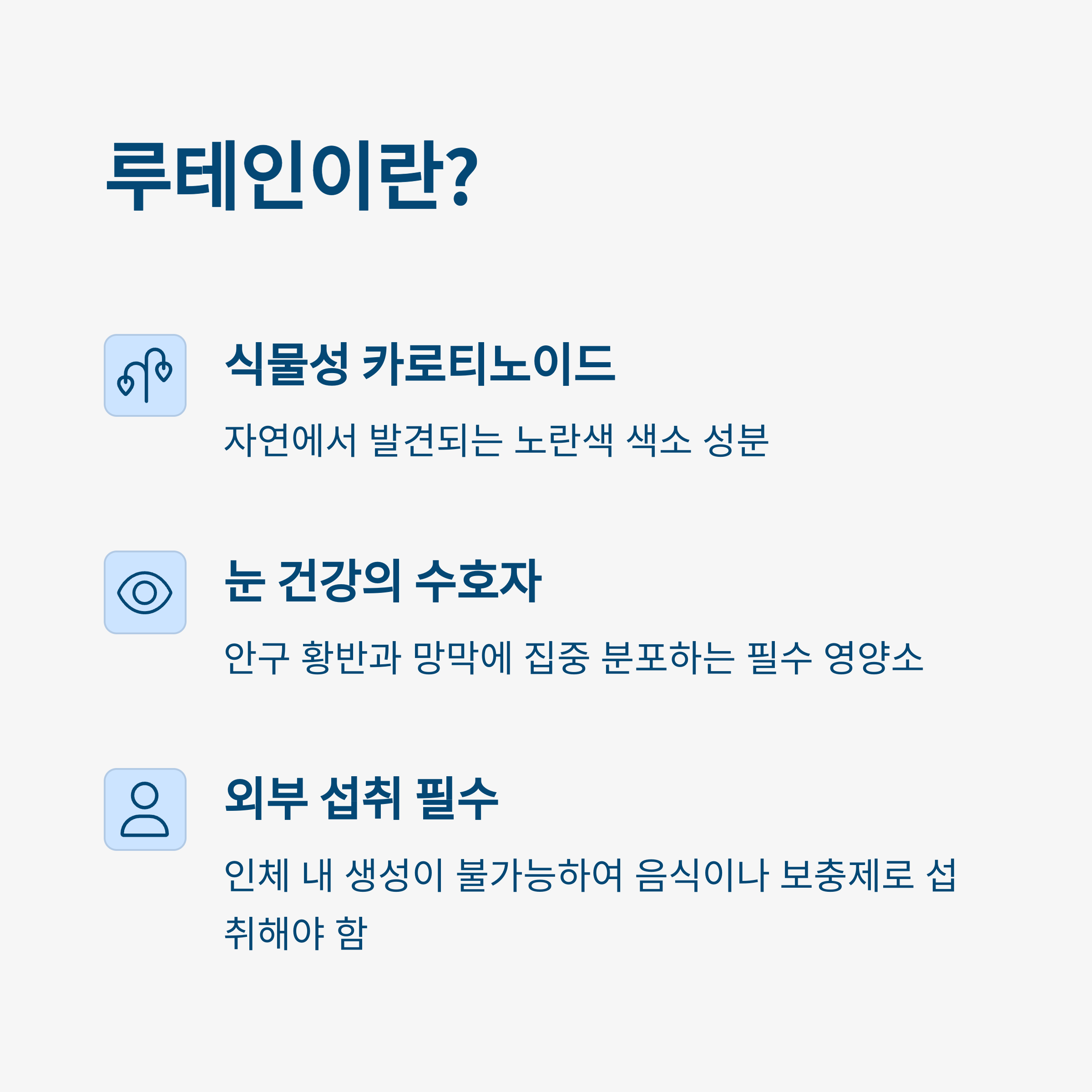 "건강한 시력을 오래 유지하려면 루테인 관리가 중요합니다."