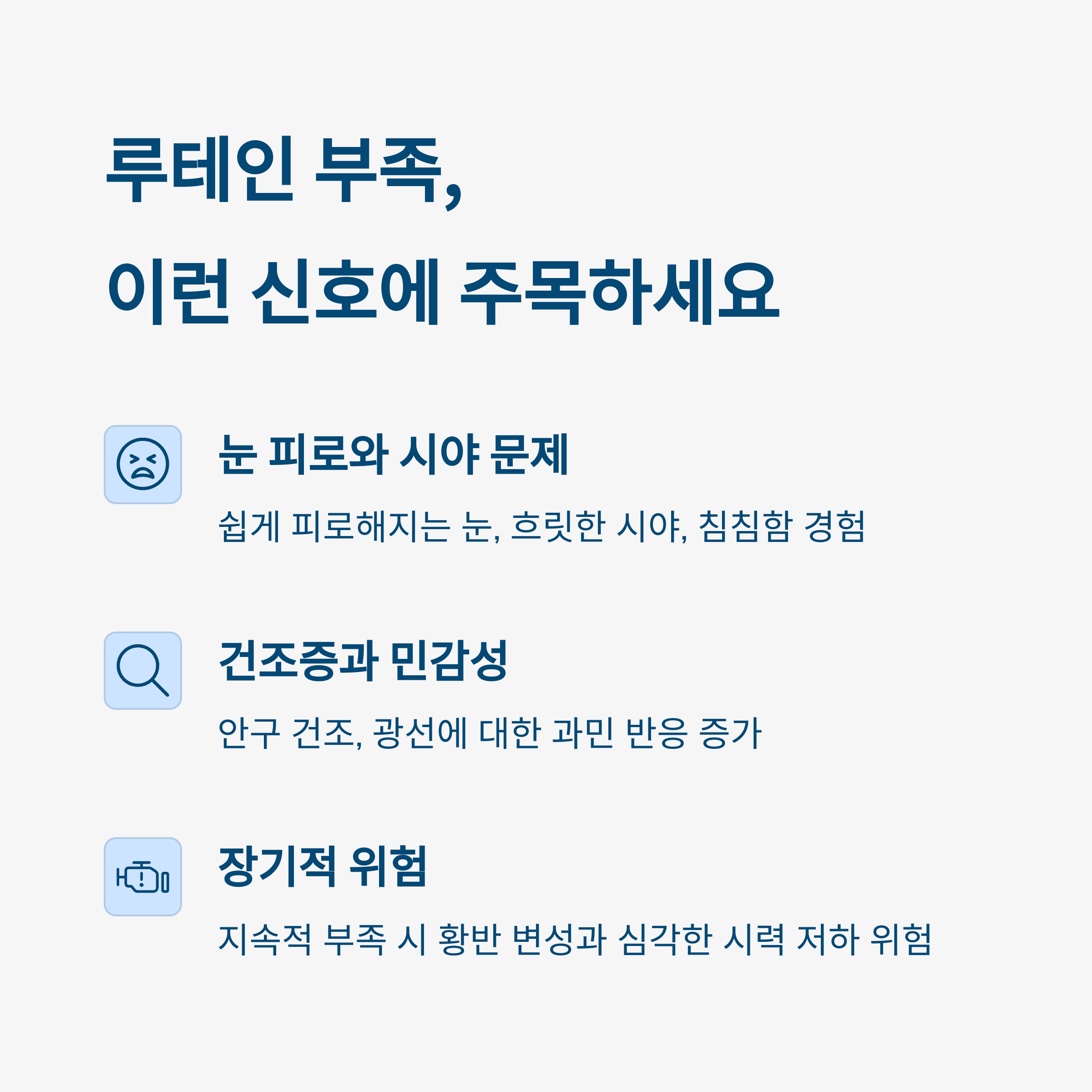 루테인이 부족하면 다음과 같은 증상이 나타날 수 있습니다.