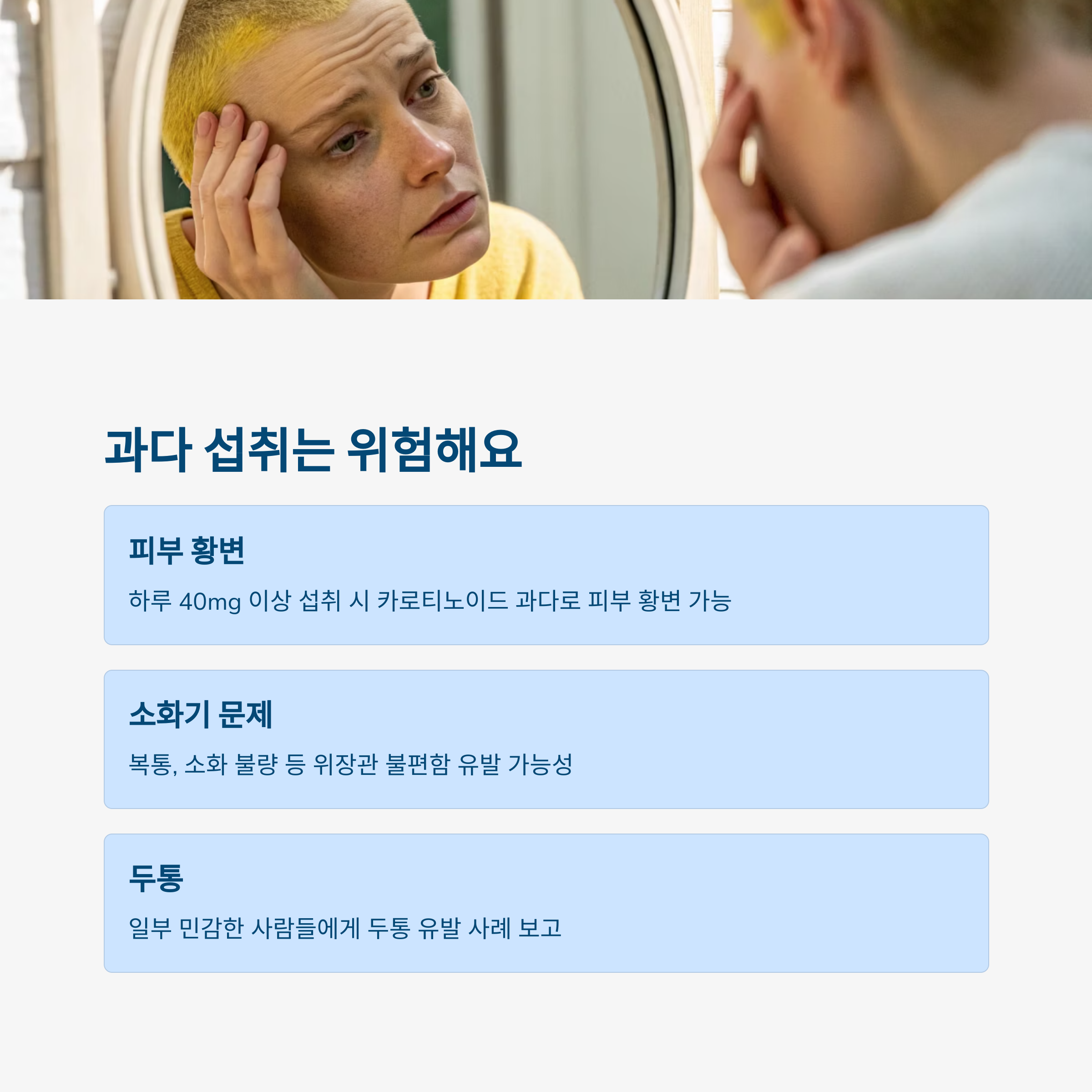 루테인은 안전성이 높은 편이지만 과다 섭취 시 주의가 필요합니다.