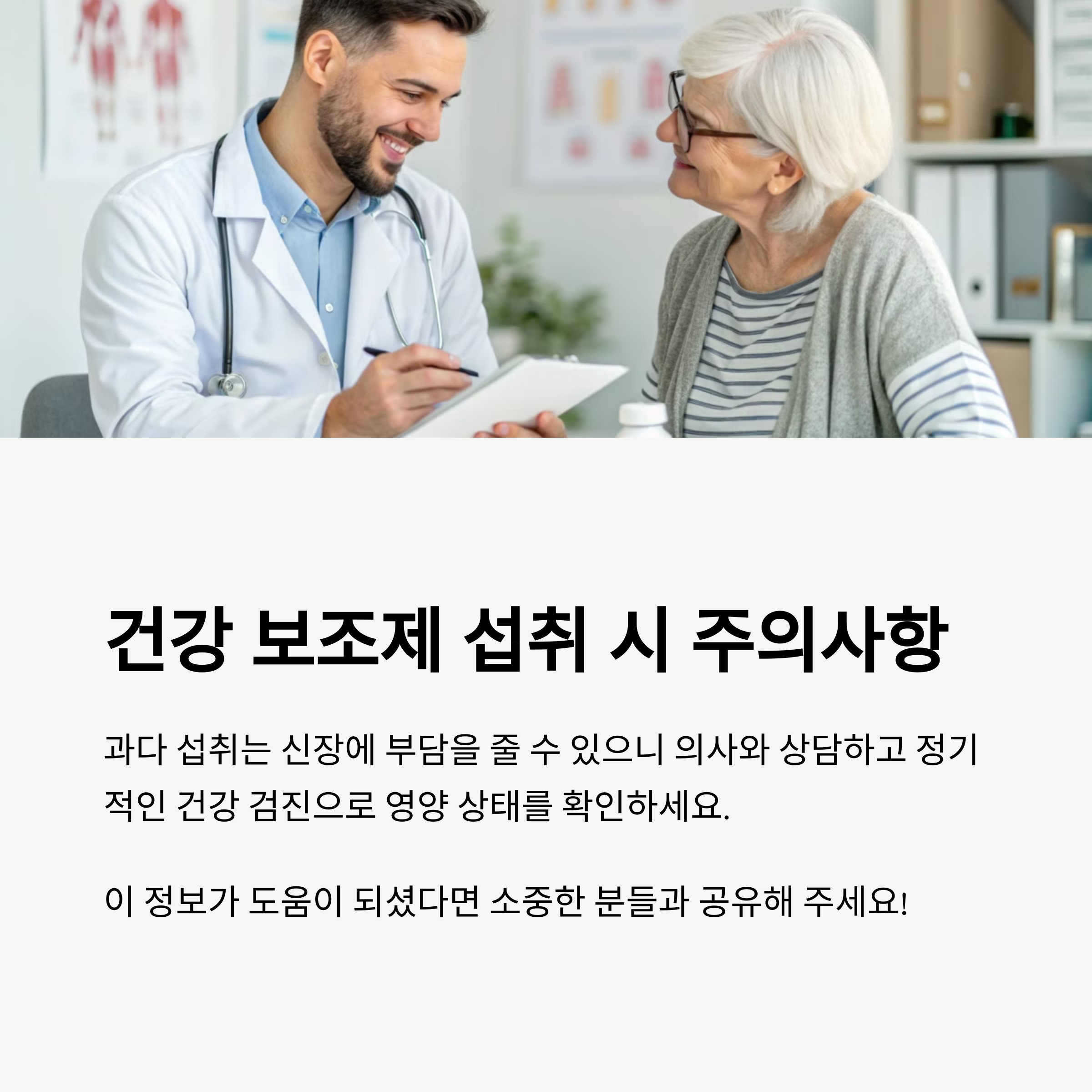 여러분은 50대 이후 건강 관리에 어떤 노력을 하고 계신가요? 어떤 건강 보조제를 섭취하고 있으며, 효과는 어떠셨나요? 댓글로 경험을 공유해주세요!